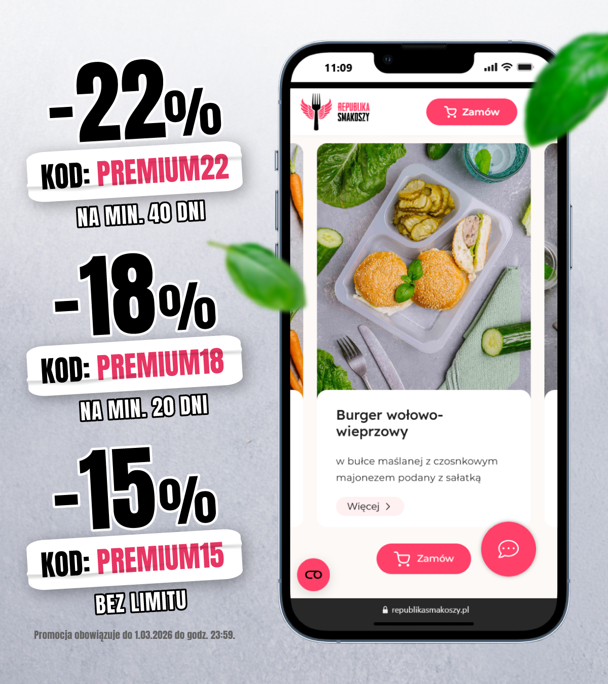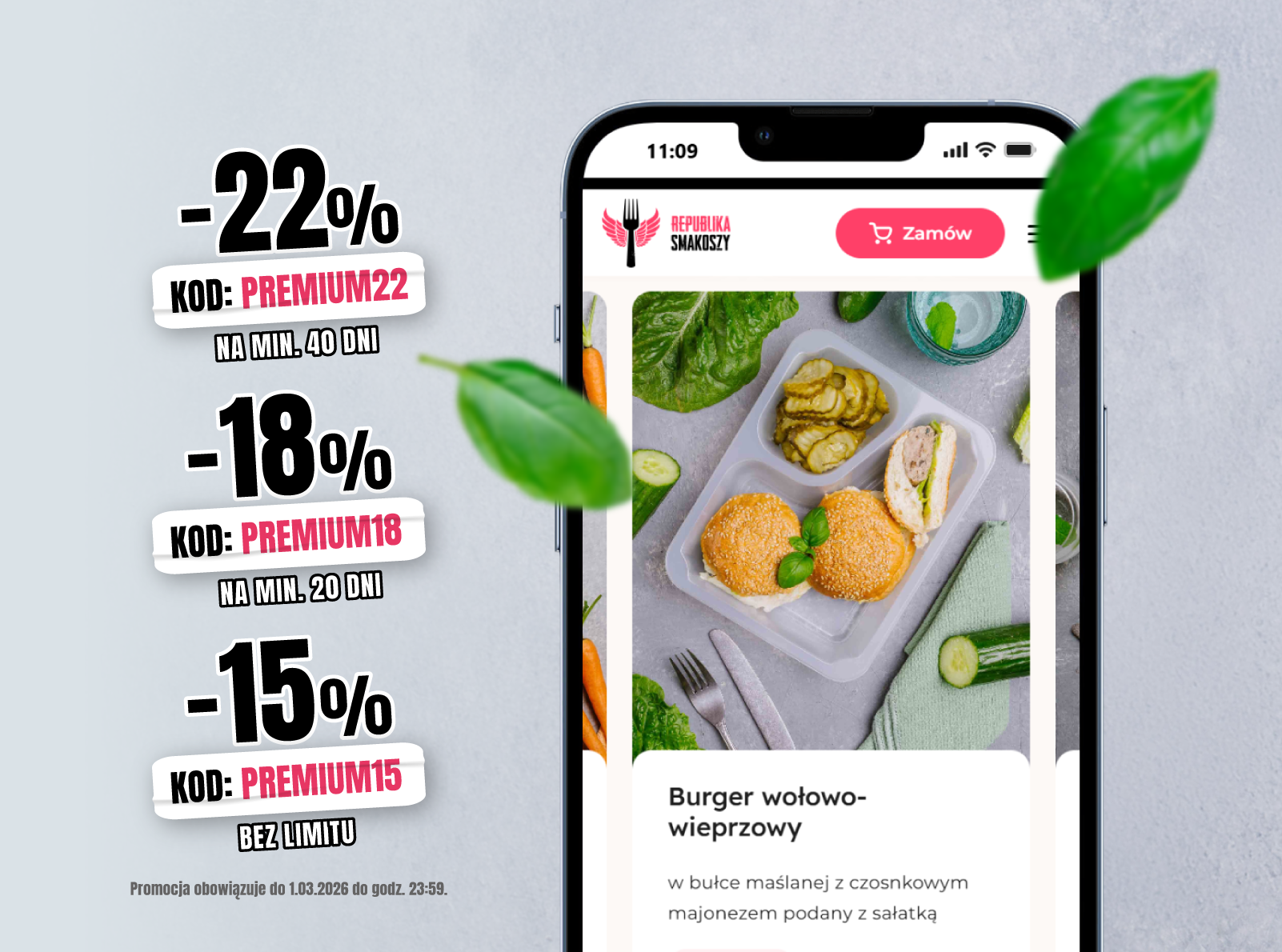 Minimalne zamówienie to 1 posiłek. Możesz z nami jadać jedynie drugie śniadania lub same obiady. Niczego nie musisz. Twoja wolność jest dla nas ważna.